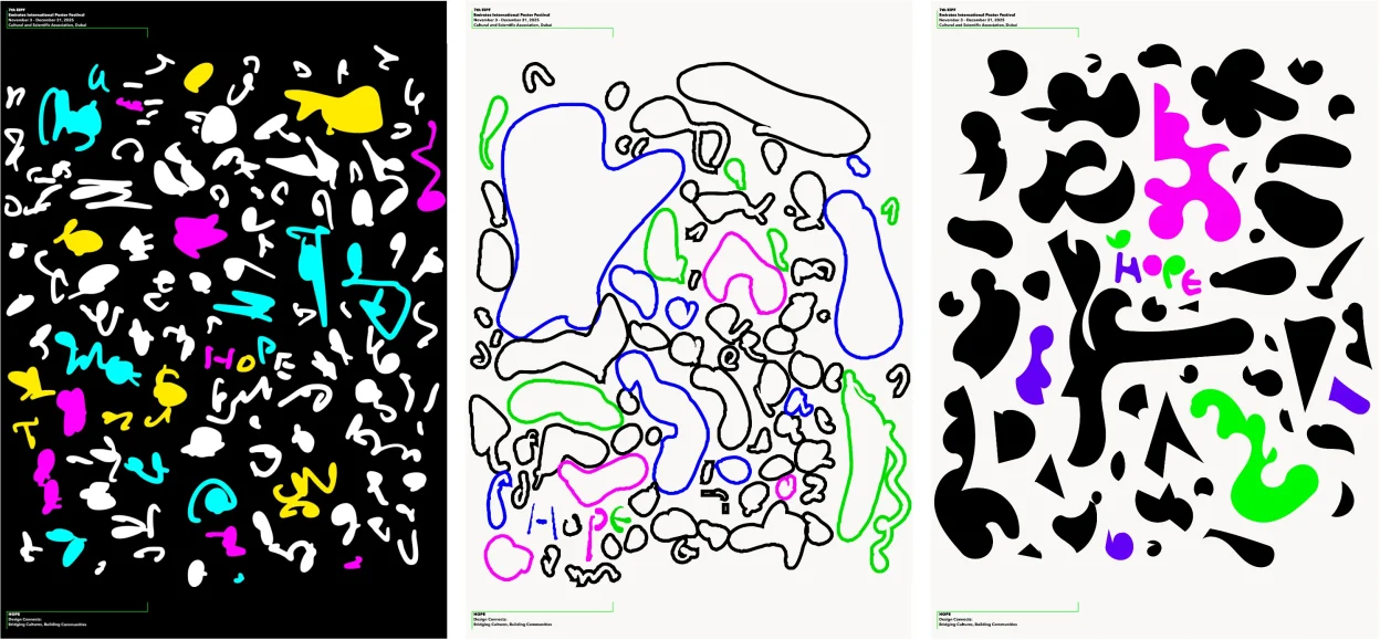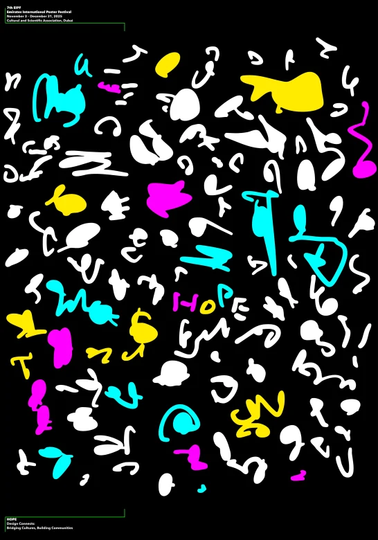 アラブ首長国(UAE)ドバイで開かれている国際ポスターコンテスト。60カ国から厳選された200点が会場に展示されています。2025年のテーマは「Design Connects: Bridging Cultures, Building Communities」。