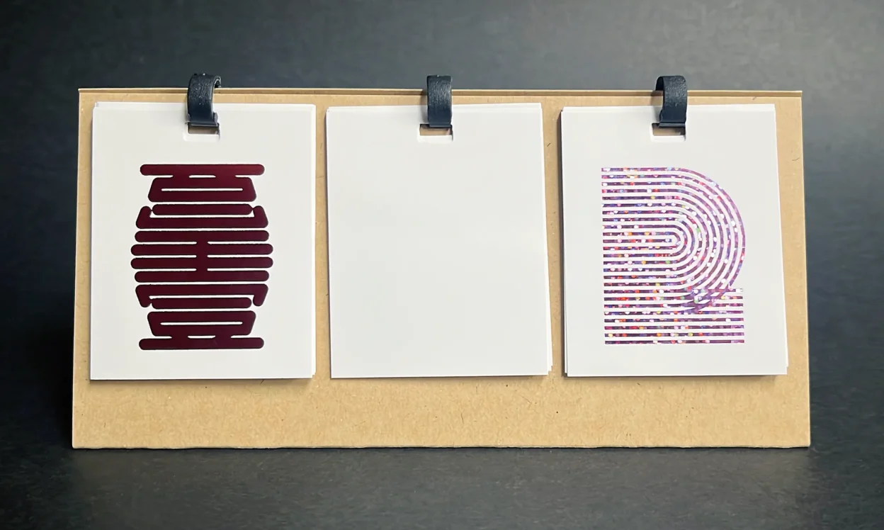 今回はサステナブルをテーマに2026年日めくりカレンダーの「玉」(数字)をデザインして箔で表現。杉崎真之助は2、王怡琴は1を担当しました。